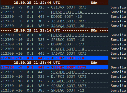 昨週末、日曜日の早朝ですが、ローカルのOMさんより、6O3T(ソマリア連邦共和国)が3.5MHz FT8でFBに入感したとのinfoがあったので、ここ数日毎朝狙っていました。
