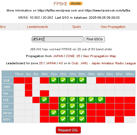 表記、FP5KE(サンピエール&ミクロン島)のOQRSが、DXペディション終了後約1ヶ月を経てようやく稼働しました(ClubLog経由)。