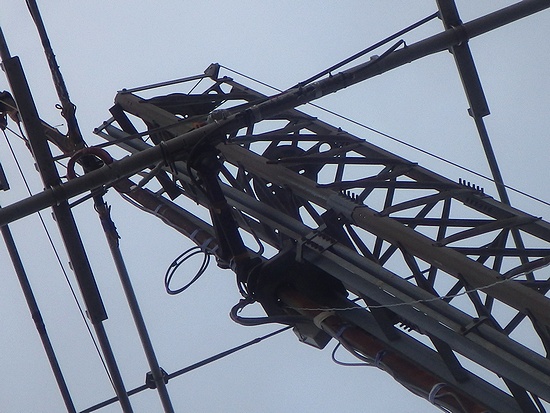 …実は、前の記事に少し書いたとおり、このところ、ちょっとしたアンテナ系の改良を思い立ち、アンテナタワー周辺でいろいろとゴゾゴゾしていたのですが、その最中、アンテナエレベータ(CD社製タワー+エレベータキット)が上段1段目の継手あたりで、引っ掛って下りてこないトラブルが発生( ̄□ ̄;。