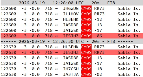 CY0Sは、Super F/HモードでQRVしており、QSBがあるのか、所々のシーケンスでロストするものの、まずまずのデコード状況だったので、早速参戦開始。