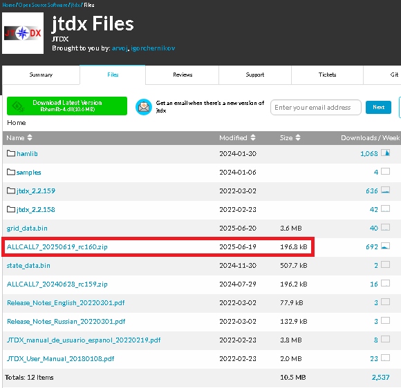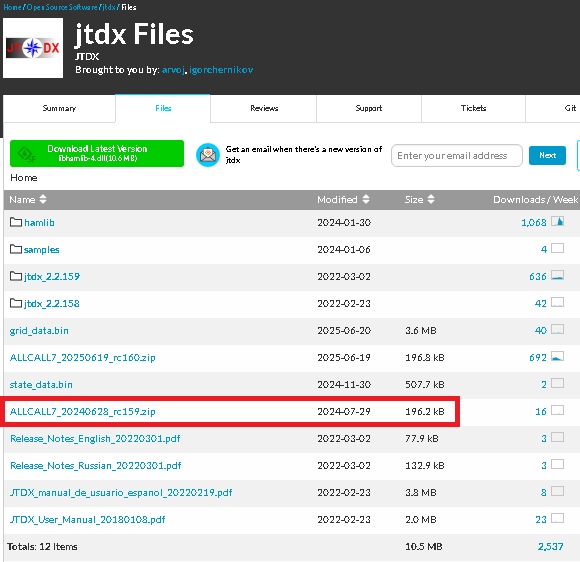 下段のver2.2.159用のALLCALL7.txtをダウンロードし直して、JTDXの所定フォルダへ上書き保存。