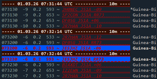 ギニアビサウは、1.8MHzを除くと、18MHzから上のBandがガラ空きなので、序盤から迎撃したかったのですけれど、いかんせんハイバンドのOPENはJA時間の夕方がメイン。